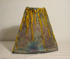 Challenging the medium of clay to produce my vision, I create works in ways that are interesting but not necessarily according to the rules. Experimenting with combinations of hand-building alongside of conventional and unconventional throwing processes lets me construct unique forms. Then using different techniques of adding glazes and other finishes in various ways, I sponge, paint, dip, pour, and wipe to produce unusual surfaces. This all works together to create great variability, or unpredictability, in the final outcome. The firing processes of raku and wood-firing are particularly favorite methods for me, as they add even more variables: fire, smoke, and ash. I am always surprised, often in a good way. Please enjoy my serendipity with me!